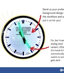 Yes! Our standard clocks are digital ones with red LED numbers display, but we also make analog clocks, following your preferred clock face design and size. If you wish to get a quote for your specific needs, please go to: